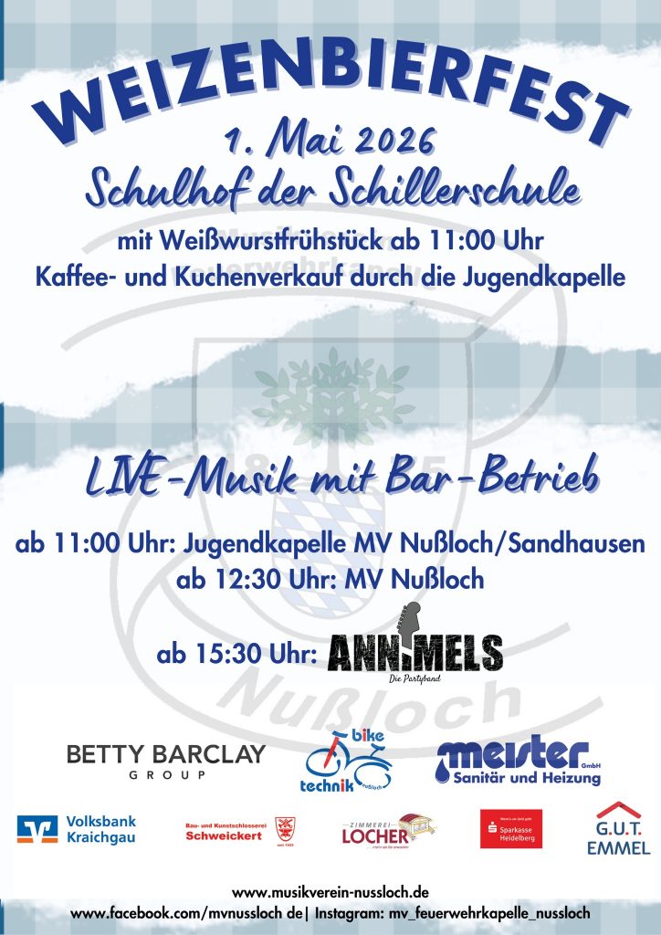 Ab dem 01. September 2025 startet der Ticketvorverkauf für das Benefizkonzert mit dem Landespolizeiorchester Baden-Württemberg und für die Megaparty am Festwochenende Freitag mit den Bands „Annimels“ und „Kult“. Die Eintrittskarten erhalten Sie bei den Vorverkaufstellen Metzgerei Neff-Neubauer – Massengasse 93 in 69226 Nußloch Bike Technik GmbH – Hauptstraße 75 in…