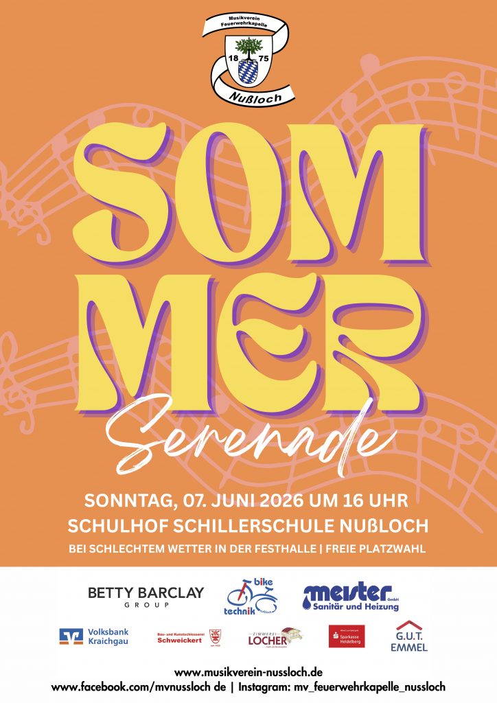 Die Mitgliederversammlung im Jahr 2026 findet am Freitag, 30. Januar 2026 um 20:00 Uhr im Saal des Feuerwehrhauses statt. Hierzu sind alle aktiven und fördernde Mitglieder des Musikverein Feuerwehrkapelle 1875 Nußloch e.V. recht herzlich eingeladen. Anträge und Anregungen sind dem Vorsitzenden spätestens zum 23. Januar 2026 Mitgliederversammlung schriftlich einzureichen. Später…